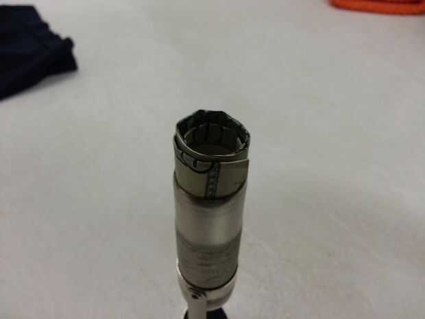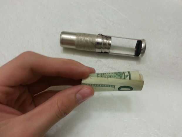 Lo primero que tienes que hacer es abrir su contenedor y cambiar el tamaño de su dinero hasta que encaje. Tuve que plegar un poco en la parte superior para que no fuera tan alto.