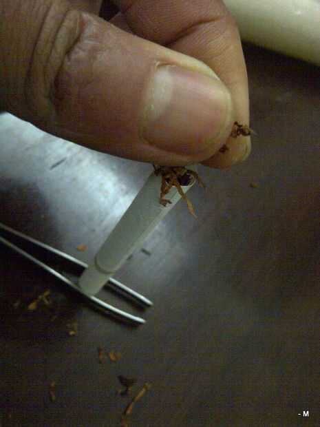 4. cubrir las piedras con el tabaco y usar tabaco de cigarrillo extra si necesidad se presenta. (La razón, llenado manual no es comparable a la del cigarrillo empresas de embalaje de cigarrillos individuales)