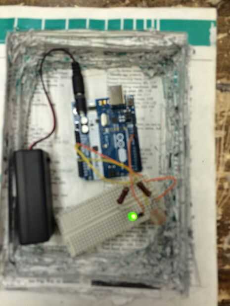 Una vez que tienes todo descargado y trabajo pone el arduino en el centro del libro con una batería así que trabaja. Como tal. Ahora han creado un compartimento oculto del libro con una fotocélula arduino con una luz led.