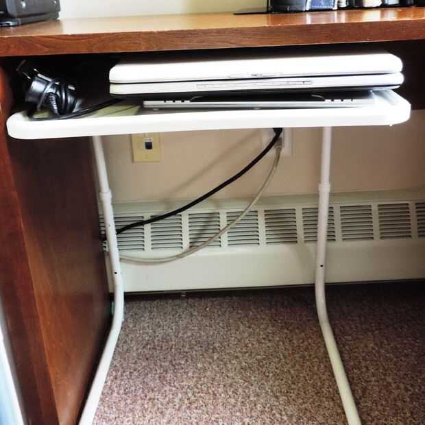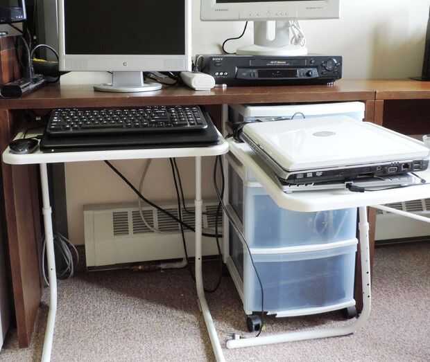 Tengo una segunda bandeja con otra laptop, que fue no está en uso, es debajo del mostrador junto a mi escritorio.