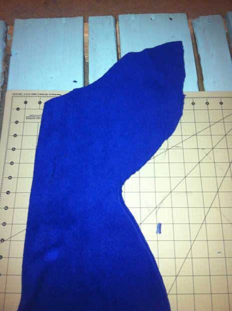 1. tomar su patrón de cuerpo de pescado y poner en el pliegue. Para marcar hacia fuera y corte. Lo mismo para la otra pieza de polar azul.