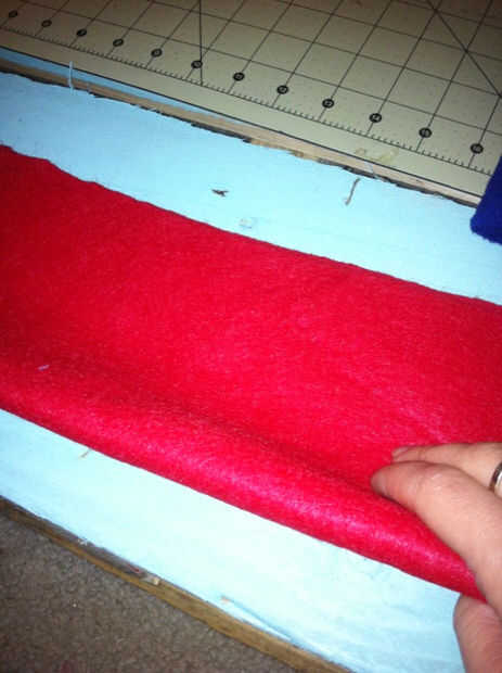 1. doble su rojo en formas largo medio. Cose los extremos juntos.