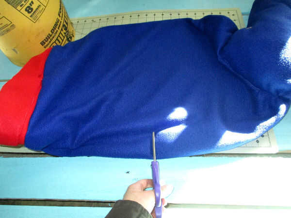 4. Haga una de 3 pulgadas a través de la costura para insertar las aletas. Otra vez, puede hacerlo en cualquier lugar, recomiendo hacerlo en el medio o cerca de la parte frontal, asegúrese de que está incluso en ambos lados.