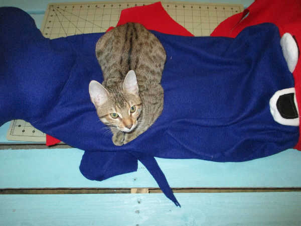 5. voltear el pescado adentro hacia fuera para que la parte más pequeña de su aleta es empujada a través del orificio. Usted debe ver las costuras de la parte del cuerpo y sólo al final de la aleta.