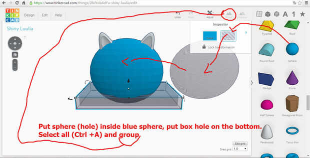 Poner el agujero de la caja en la parte inferior de la esfera azul - hará estable.