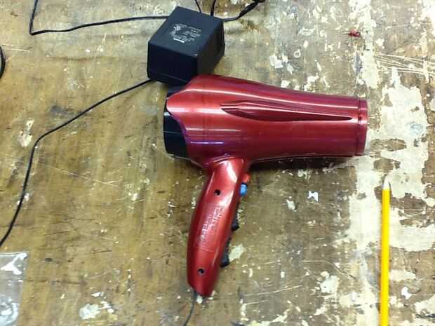 se trata de una serie de experimentos con un motor de 12 voltios de un secador de pelo. El secador es 220 voltios, pero en lugar de utilizar un transformador utiliza la resistencia térmica en serie para reducir el voltaje a 12 voltios y algunos diodo