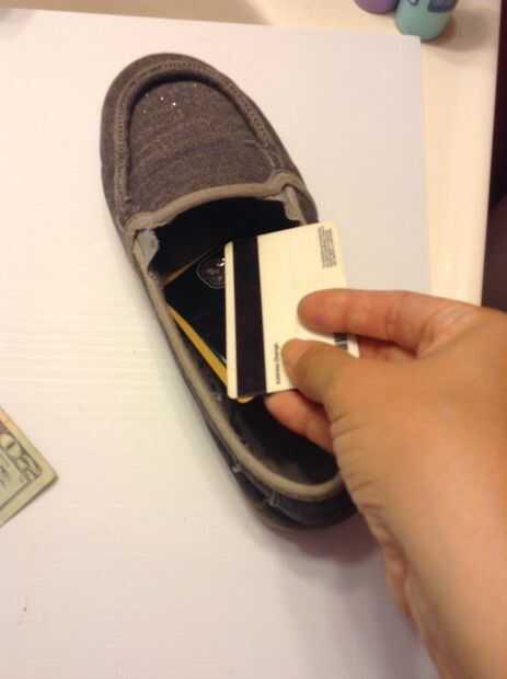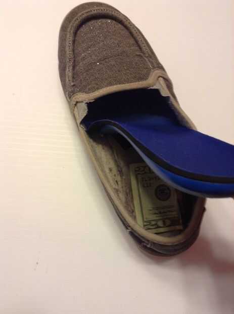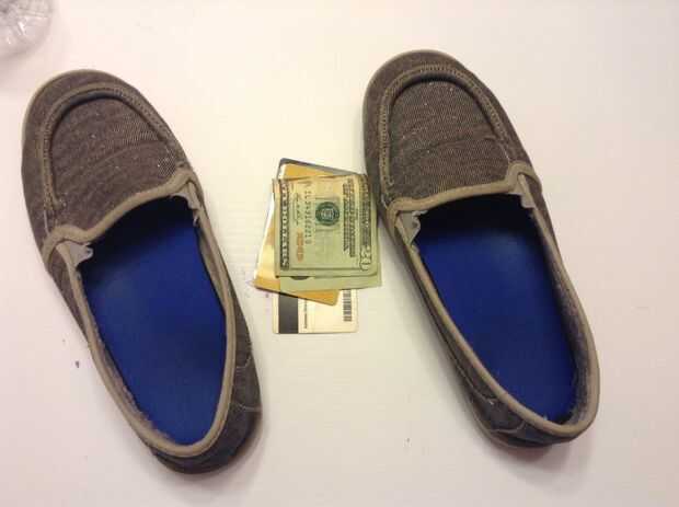 Organizar cuidadosamente el dinero o pertenencias personales dentro de cada zapato.