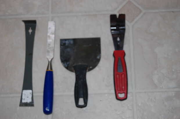 Una especie de cuchillo de la herramienta, masilla de palanca con hoja más gruesa o un pedazo plano de metal