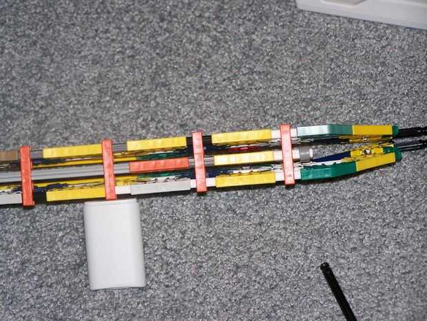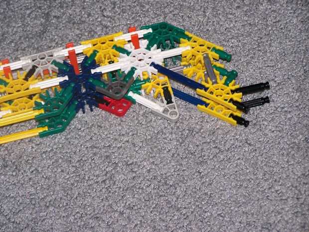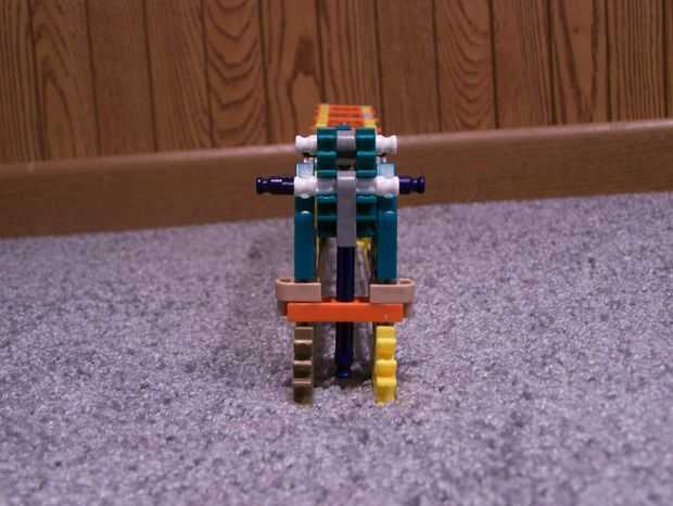 la barra larga gris del percutor hacia abajo los conectores naranja de la parte delantera y encaje azul en el lugar