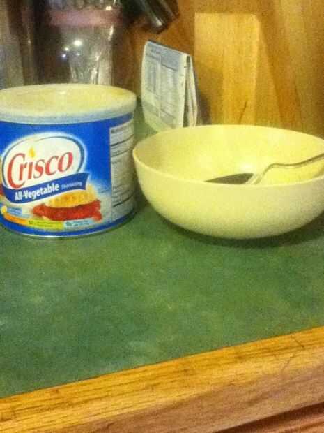 Si tienes cera de vela, continuar y omitir este paso. Poner sobre 2 cucharadas de manteca en un tazón de fuente vegetal y poner en el microondas hasta que se derritan.