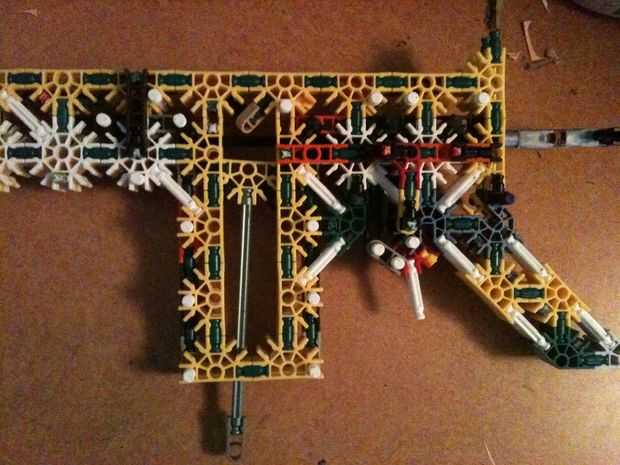 barras de incendios azul con cargador tiene acción de bomba y gatillo de verdad. bastante potente, que aqui esta el videoPaso 1: el marco 1 este es el muy delantero del barrilno olvide poner las piezas grises y negras en él.hacer dos de cada parte de