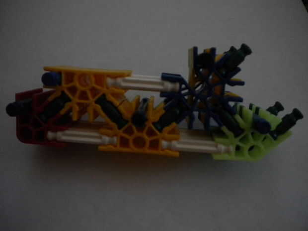 Hola, este es mi K'nex escopeta, dispara balas de por lo menos 2 al mismo tiempo y tiene mucho poder. He intentado hacer la pistola más sólido de su forma original mediante el refuerzo de las piezas alrededor del gatillo con conectores escalera naran