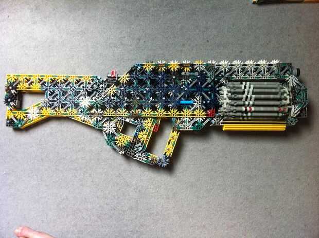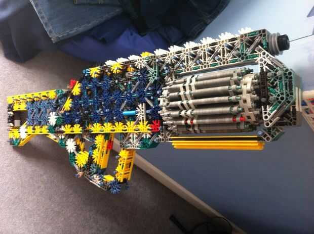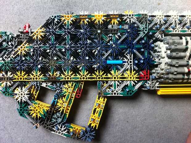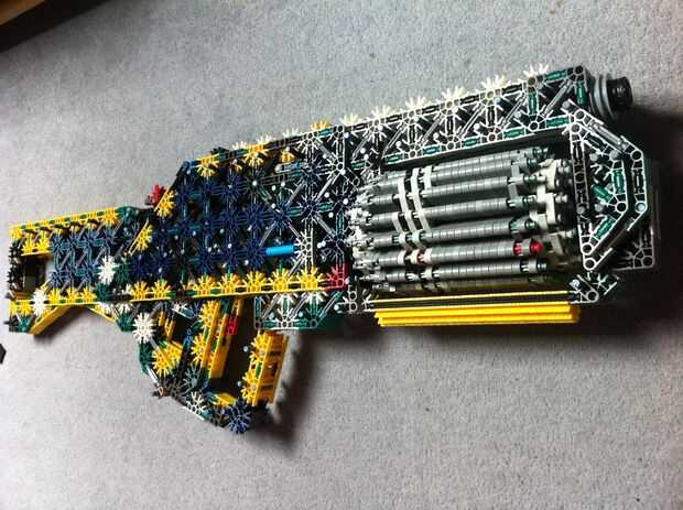 he estado jugando un poco de Mass Effect y el halcón M-37... un montón de diversión. Así que, naturalmente, hice uno. Hice una escopeta en lugar de un lanzador de granadas porque, Afrontémoslo, granadas de K'nex son completamente inútiles. Sigue siendo divertido como infierno para disparar. Como usted puede decir probablemente de la imagen, hace un diseño de torreta genérica pero muy eficaz y lanzó pedazos en él hasta que parecía algo así como un halcón. No, no es perfecto, pero es un buen punto medio entre estética y función. Es casi un metro de largo y pesa 3,5 kg (alrededor de 8 libras).