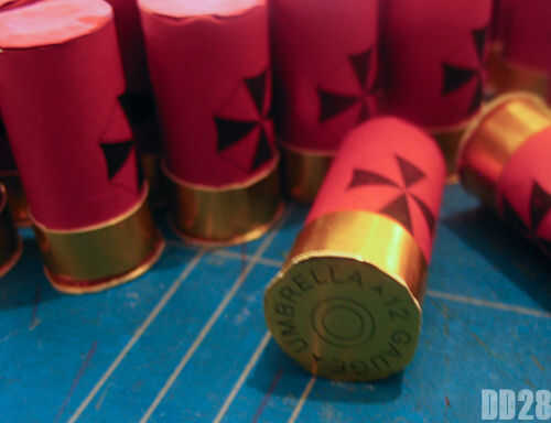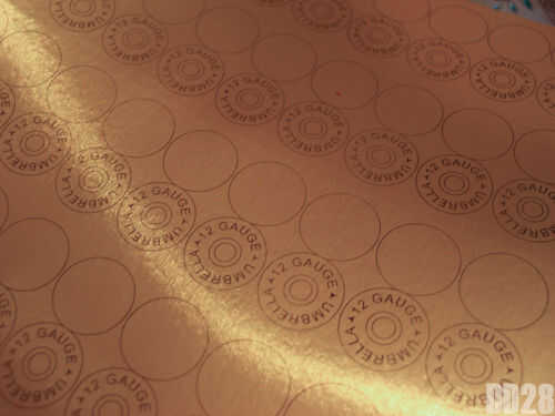 A continuación usted tendrá que imprimir la Shotgun Shell final Cap.pdf en la tarjeta del oro utilizando una impresora láser, las impresoras de inyección de tinta no funcionan en el oro lado. Si no tienes acceso a una impresora láser a imprimir el archivo en el reverso de la tarjeta, de modo que usted puede todavía cortar las tapas con el tamaño correcto.