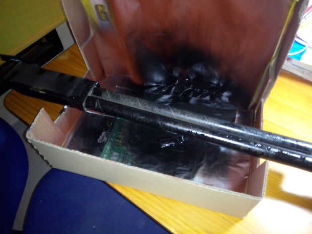 Pintamos el cañón y cuerpo (gatillo incluido) con pintura negra brillante. La culata y la corredera las pintamos de marrón.