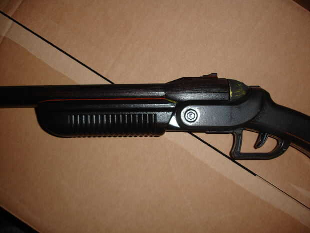 Después de desarmar el doble tiro (no son ningún donde cerca de ingeniería así como el Nerf que) rocía todas las partes con pintura aerosol negro mate. Sólo por diversión (y comprobar realmente pude recordar cómo) pongo la pistola de nuevo juntos para ver cómo miraba en negro plano.