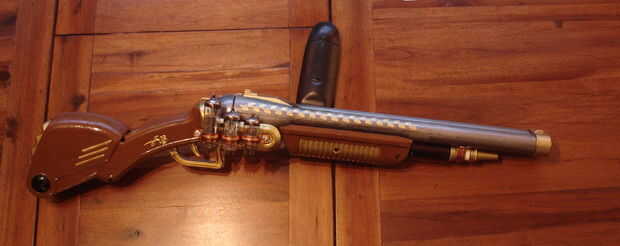 Empecé con una pistola de dardos soft de AirBlasters doble tiro por Buzz Bee Toys. Iba a usar un Nerf Barrel Break pero el tiro doble acaba de hacer una mejor base para victoriana / pistola steampunk. El doble disparo también cuenta con auto expulsar cáscaras que son francamente sorprendentes.