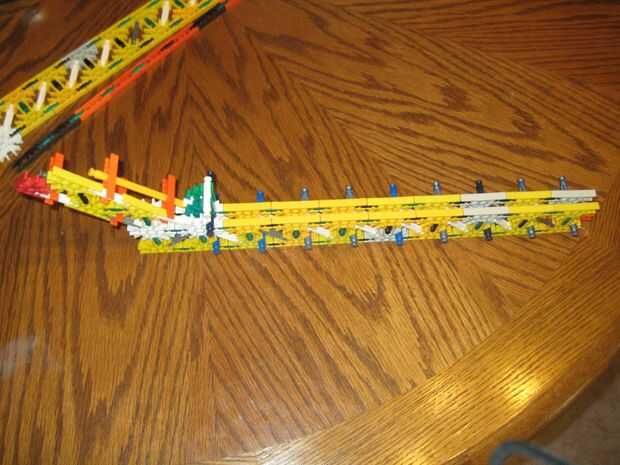 Hola, este es mi K'nex escopeta, dispara balas de por lo menos 2 al mismo tiempo y tiene mucho poder. He intentado hacer la pistola más sólido de su forma original mediante el refuerzo de las piezas alrededor del gatillo con conectores escalera naran