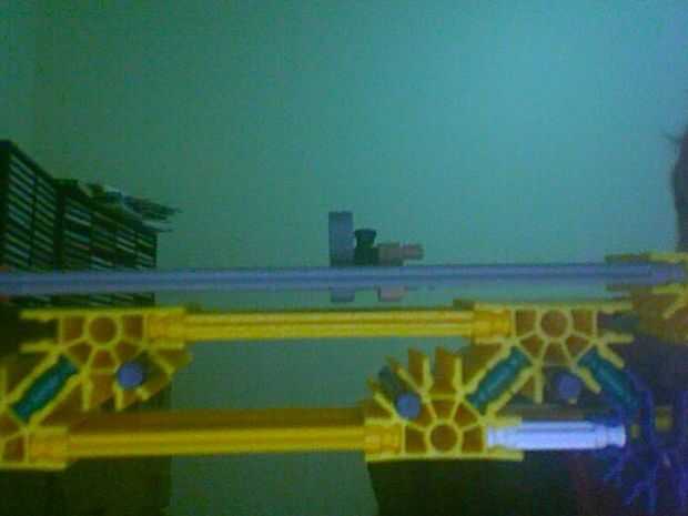 Hola, este es mi K'nex escopeta, dispara balas de por lo menos 2 al mismo tiempo y tiene mucho poder. He intentado hacer la pistola más sólido de su forma original mediante el refuerzo de las piezas alrededor del gatillo con conectores escalera naran
