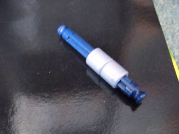 5. Deslice estas 2 cosas para arriba en el mango y añadir una barra blanca donde se.