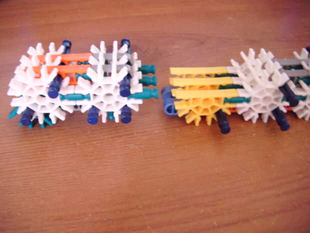 Combinamos el extremo posterior del cañón (paso 6) en el extremo delantero del barril (paso 7)