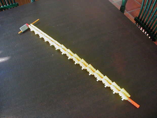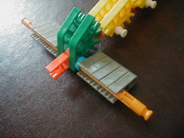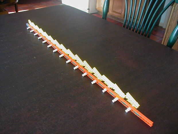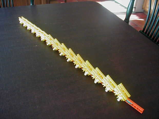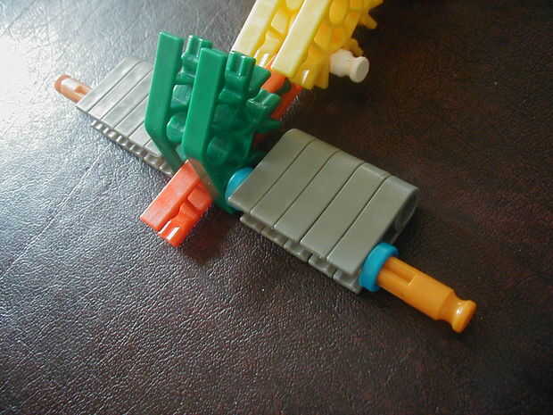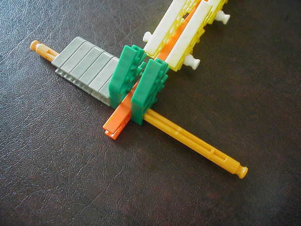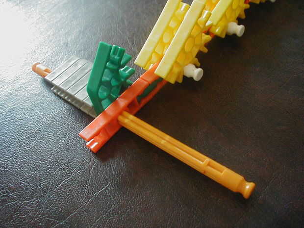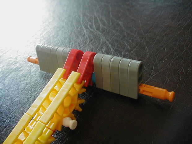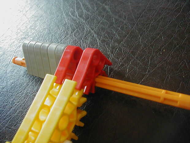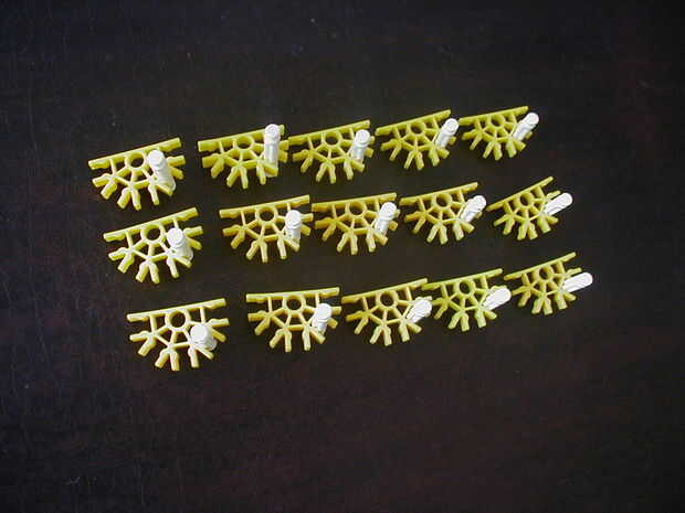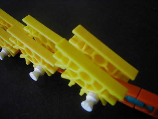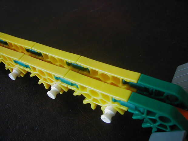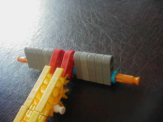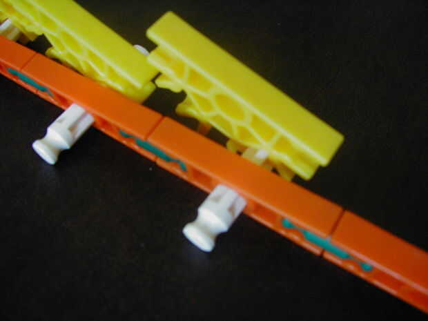 6: colocar los otros conectores amarillo a las barras blancas en el otro lado de los conectores naranja