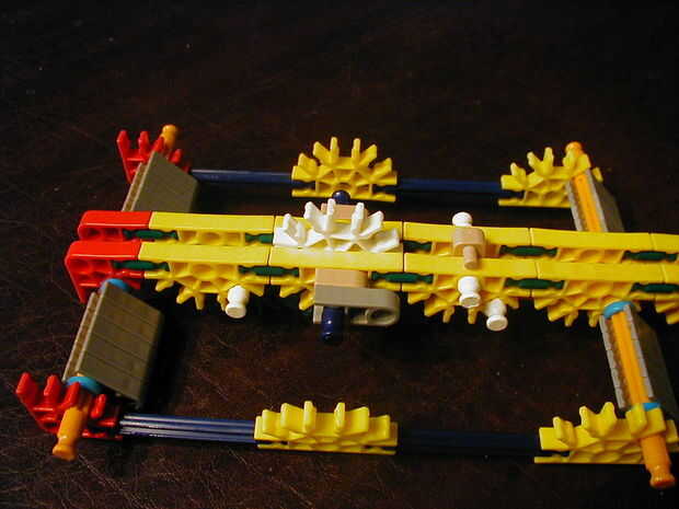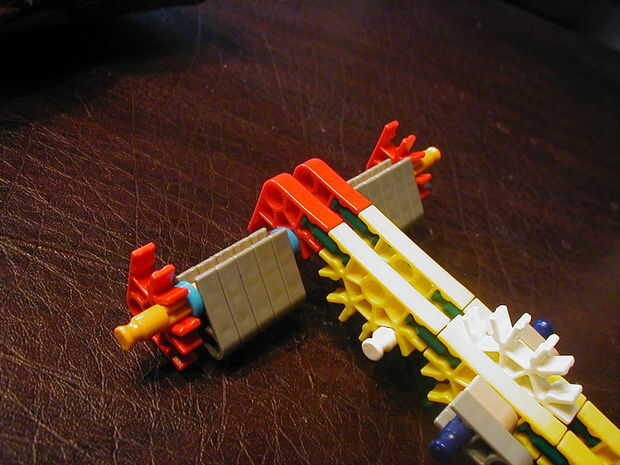 13: Acople los conectores verdes y amarillos junto con barras verdes