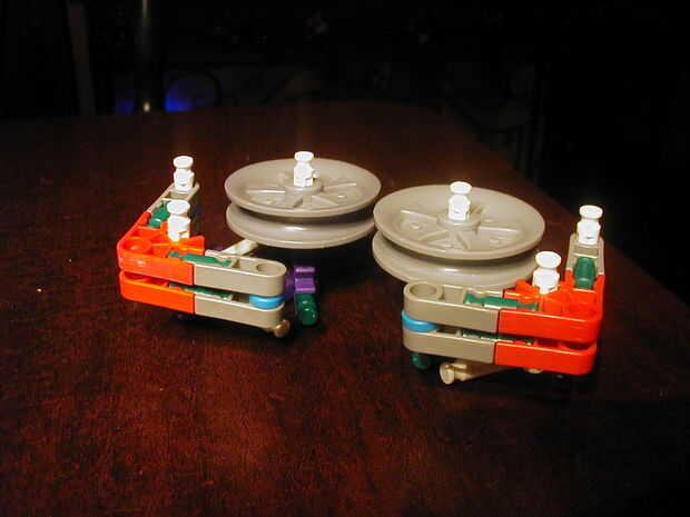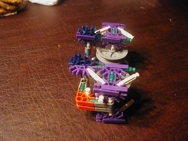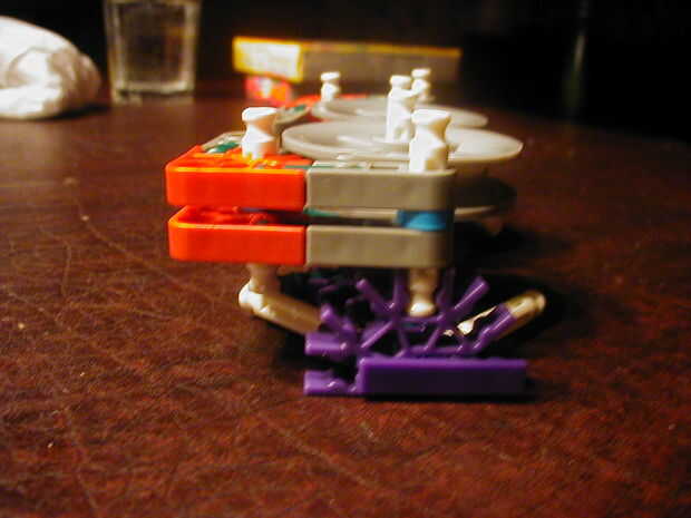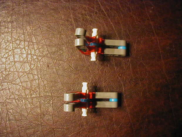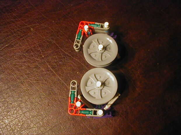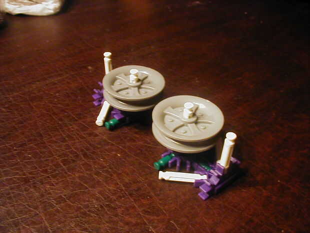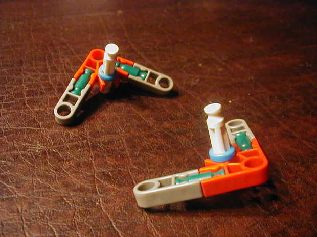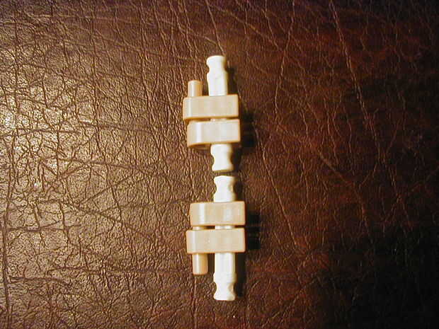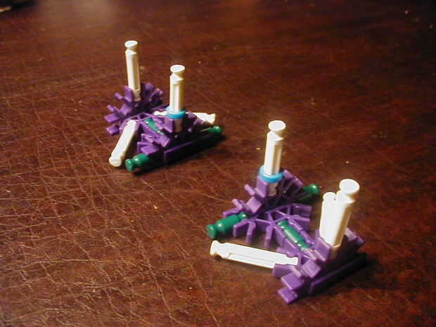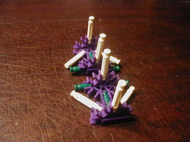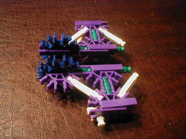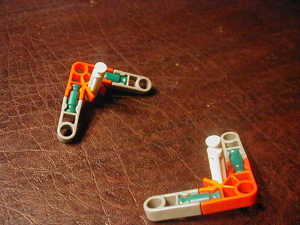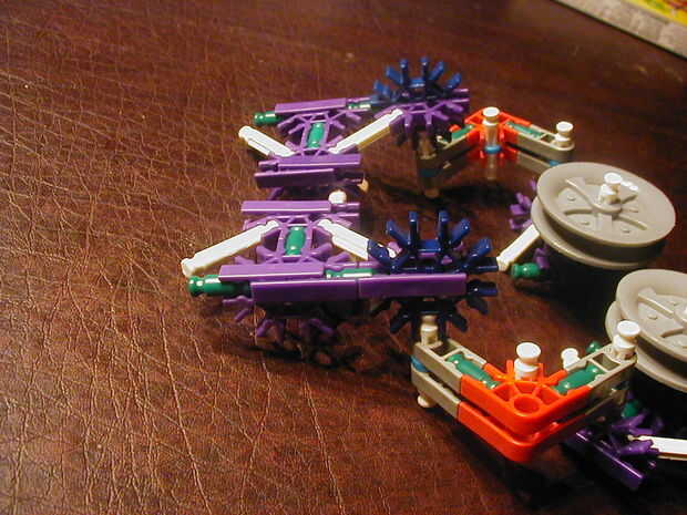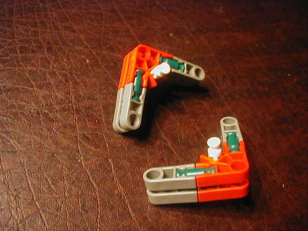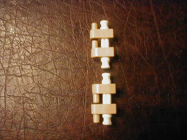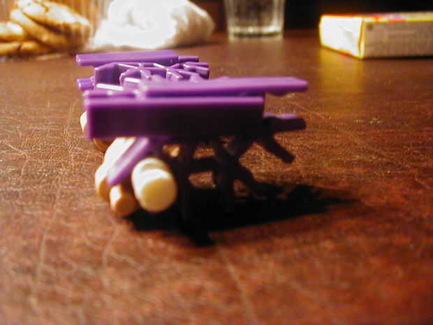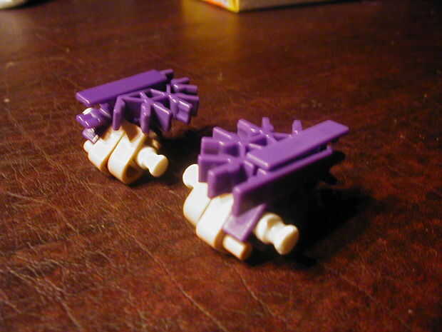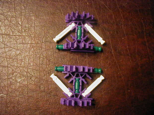 21: gira las piezas para fijar los conectores de color púrpura a las barras blancas