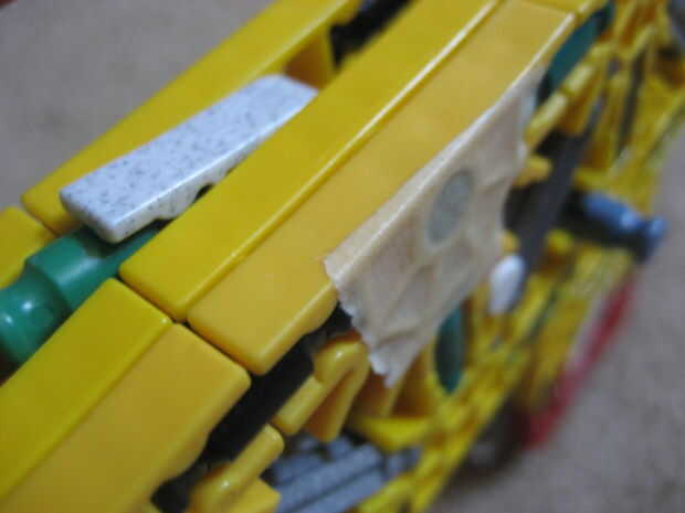 Cuadro 8: Poner la barra verde en el agujero y puso la cinta en el lado.