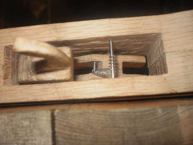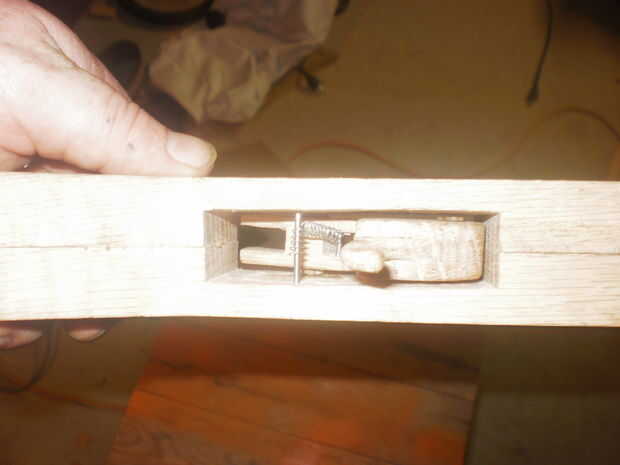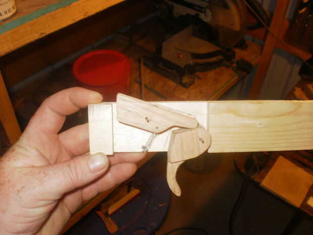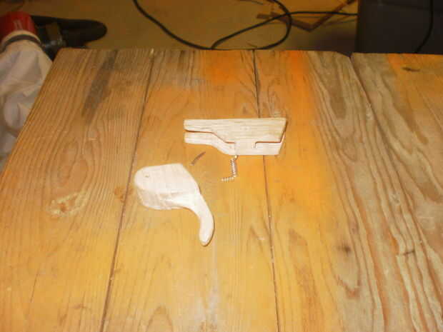 Una vez que los agujeros son perforados, necesita martillo suavemente los pernos en un lado. Usé clavos de acabado para el gatillo y suelte los pernos de montaje. Cortó los puntos y cabezas y corta uñas para encajar en la carcasa, asegurándose de que son lo suficientemente cortos como para que no perfore a través de la parte exterior una vez afianzado con abrazadera juntos. Usé una broca que era del mismo tamaño que mis clavos de acabado. Se pueden utilizar clavos que tienes como las piezas de disparo y liberación moverse libremente y se cortan a la longitud apropiada. Consulte la fotos de abajo para el conjunto de disparo y liberación. Una vez que todas las piezas de gatillo en lugar de un lado de la culata, está listo para colocar con mucho cuidado la otra mitad de la población. Ahogue la mitad de la población que tiene el gatillo atado (no) no tener pegamento en el alojamiento del gatillo. Cuidadosamente Alinee los agujeros perforados en la otra mitad de la población con las clavijas y en su lugar.