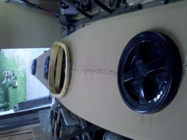 El plan básico es la parte superior del cubo de la sierra y puntadas en la piel de la piragua. Luego podemos ajustar la Gamma sello tapa el y tenemos una portilla preparada!