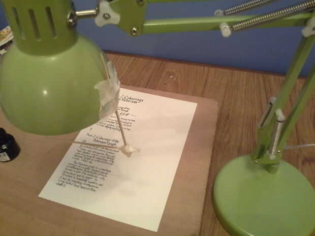 Al hacer la caligrafía, a menudo hacen las marcas de lápiz sobre papel blanco, por lo que puedo escribir directamente y luego borrar las guías (tambien he leido que no debería hacer esto, pero por desgracia). Toma tiempo.