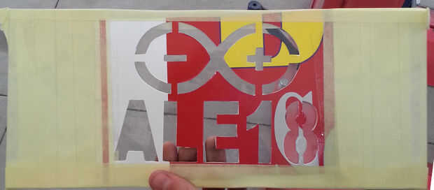 Después de hacer la máscara, tienes que tomar el plexiglás y fije la máscara sobre con cinta de papel. Asegúrese de cubrir todas las partes no desea lijar. Le sugiero que para hacer alguna prueba con un descarte de plexiglás para encontrar la mejor manera de fijar la máscara en el plexiglás y la mejor época de chorro de arena. Se encontró que 2-5s de lijado es suficiente para que nuestra pieza de plexiglás. Después de esto que estarás listo para la arena, mirar el plexiglás enmascarado que compruebe si hay algo mal y luego empezar a lijar. Asegúrese de exponer para el mismo tiempo a todas las partes de plexiglás.