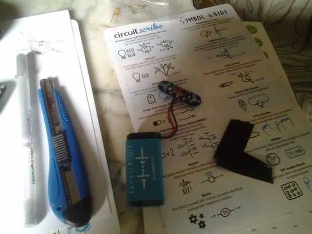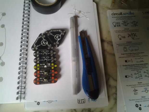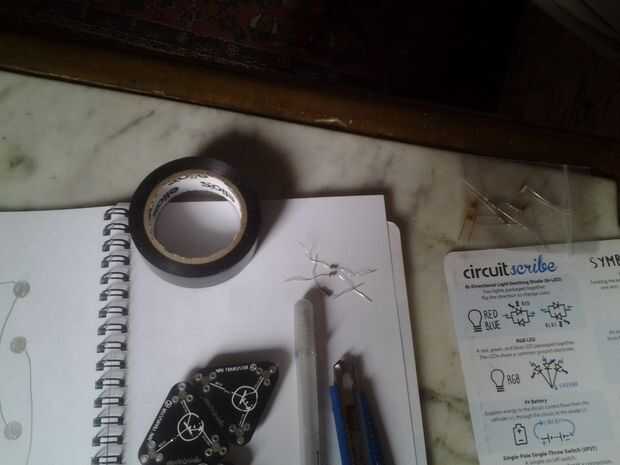 Para piezas no magnéticas circuitscribe kit usamos componentes electrónicos regulares y cinta adhesiva en papel