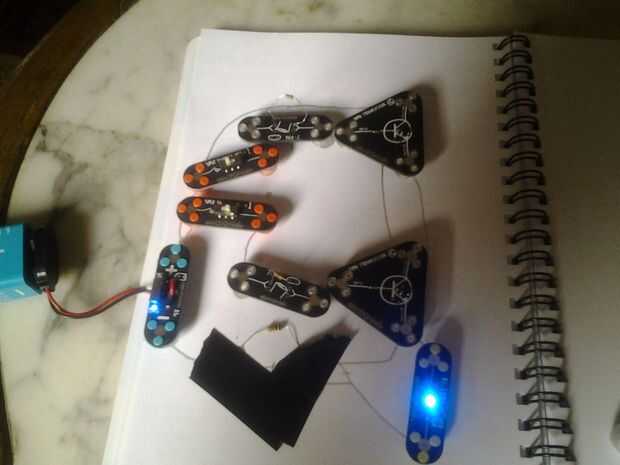 Simplemente, inserte el resorte (la cosa rectangular que componentes magnéticos snap-on) de la superficie debajo del papel y el inicio agregar componentes magnéticos donde pretendía, si usted como yo no un miedo componente magnético no, en el lugar que debería haber sido buscar un componente electrónico regular con la misma función y sujete a los círculos donde magnético uno quedaría usando cinta aislante