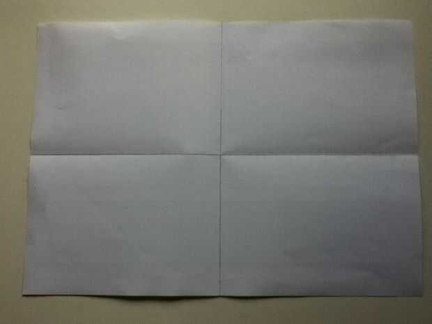 Dibujar una línea vertical y una línea horizontal. Consejo: Doble ligeramente el papel por la mitad para una guía. Mira la imagen para obtener más información.