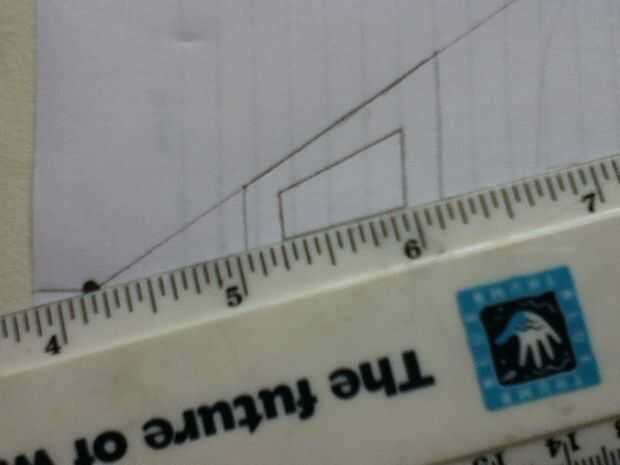 Ahora para la parte difícil. Escribir una R (o cualquier letra) en letras mayúsculas. ¡ Pero espere! Para las partes verticales de la forma, dibujarlos verticalmente. Aquí está la trampa. Para las partes de la forma que no son verticales, necesita ir con la perspectiva. (Exactamente no sé cómo decirlo, tan) Poner la punta de su lápiz en el punto a la izquierda para actuar como un pivote. Gire la regla y trazar una línea (mira la segunda foto para ver lo que me refiero). Como se puede ver, la parte inferior y superior de la carta se inclina con la línea que une los puntos.