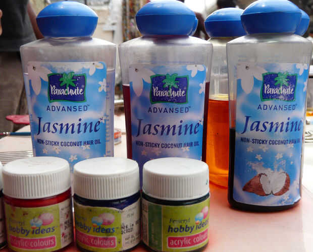 1. pelo aceite (preferiblemente uno bastante translúcido)-yo he usado aceite de jazmín.