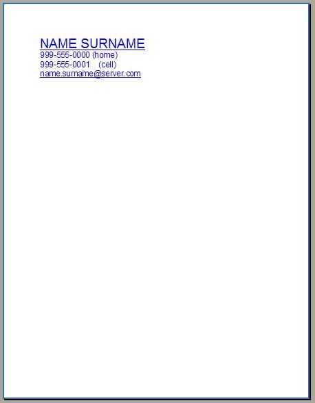 Fuente de texto normal, tamaño 14, bajo su nombre incluyen había simplificada información de contacto, su correo electrónico y un número de teléfono que siempre respondes en privado preferiblemente con un sistema de mensajes anunciando su nombre. Es generalmente mejor responder a un mensaje para que tengas tiempo para pensar y planificar sus respuestas. Usted también querrá un email sonido profesional dirección demasiado, evitar los correos loco obvio que pueden limitar los puestos de trabajo. redneck-geek puede sonar frío, pero no aparecen suficientemente profesional al aplicar para una posición de calidad. Sin necesidad de una dirección que no conozco una empresa de contratación siempre correo una solicitud de entrevista aunque he visto que una dirección se convirtió en un negativo debido a la distancia de recorrido hasta una entrevista, más bien le dan cuando se le preguntó o cuando tienes un trabajo, el supuesto ser vivo en algún lugar y sabe que puede conseguir usted mismo a trabajar a tiempo. No es que la gente importa leer su información de contacto pero que no tienen que cazar para él si decide contactarlo para una entrevista por teléfono o correo electrónico, teléfono es la forma habitual de negocios.