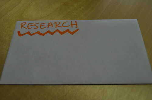 Esto es donde es bueno utilizar sobres. Puede escribir investigación en lo que tengas, papel, servilletas, post-its, cualquiera que sea--y mantener en la envolvente para sacar lo que necesita. Dulce.