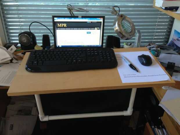 Otra semana, otro artículo, sobre las consecuencias adversas cardiovasculares, musculoesqueléticas y psicológicas de nuestra (mi) estilo de vida sedentario. Por lo tanto, para proteger a mi auto perezosa y barata, que necesitaba un escritorio pie rápido, fácil y asequible.