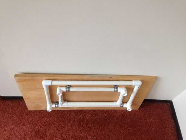 Mis disculpas, otra vez, para no proporcionar instrucciones del tamaño exacto pero, una vez más, depende el tamaño de la silla que está trabajando y desea que el tamaño de la mesa. Más cerca el escritorio es el tamaño de la silla, más estable será. (el mío es muy estable). El PVC y los soportes no deben dañar la silla y debe permitir el escritorio venir y apagar fácilmente. Firme!