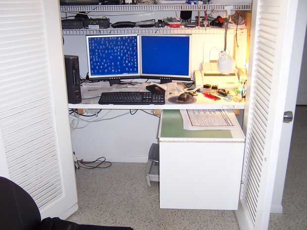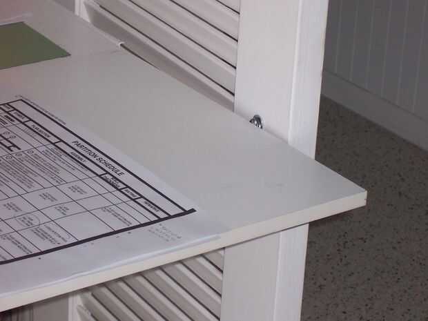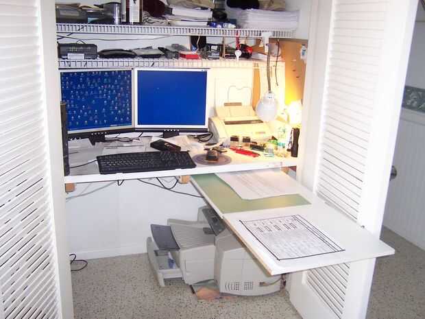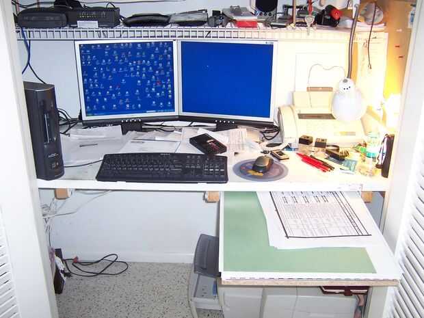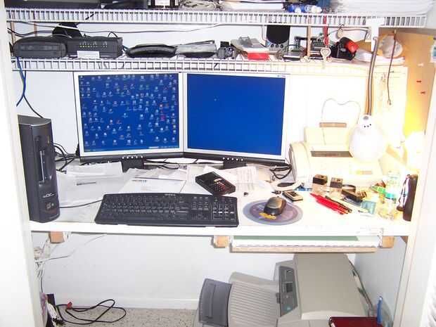 escritorio closet necesita más espacio superior, una diapositiva de trabajo.