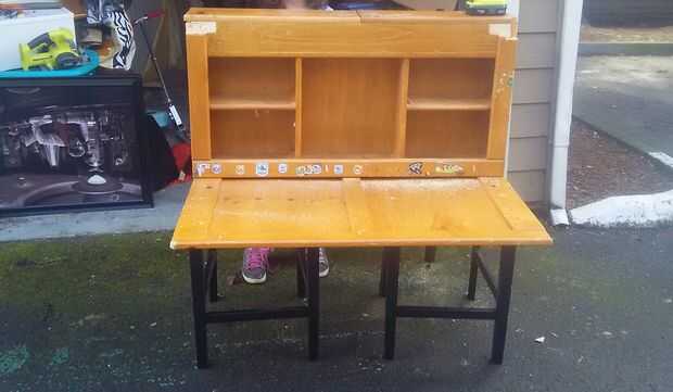 En primer lugar lo que usted ha elegido para ser su escritorio y recostarla a través de las dos partes de las sillas asegurándose que los extremos línea y su lavado Nick nivel tornillo su escritorio a las patas con los tornillos dijo desde el asiento cuando Desarme las sillas.