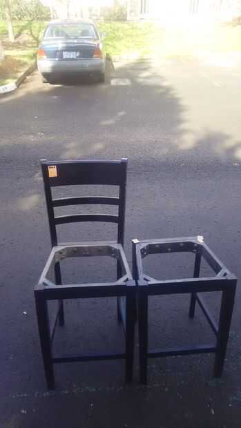 Comienza por cortar las patas de la derecha de la cabecera hasta donde se encuentran la parte superior del tablero la parte de las estanterías en él. Ahora esta a un lado se volverá a ella más tarde. el tablero de pie que usa era sólo un tablero que fijan los rieles a él así que realmente no tenía nada en distintos algunos lijado que tenía que hacer. A continuación utilicé 2 sillas de comedor que tenía la espalda rota en ellos. Tomé las hojas fuera de ellos por él Atornillar por la parte inferior guardar estos tornillos los necesitará más adelante. entonces fui y cortar la parte de atrás así derecho a usar la derecha donde se reunieron con el asiento. puede mantener estas piezas o desecharlos si no queremos.