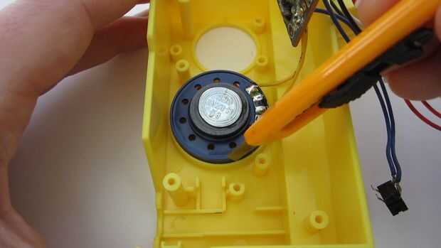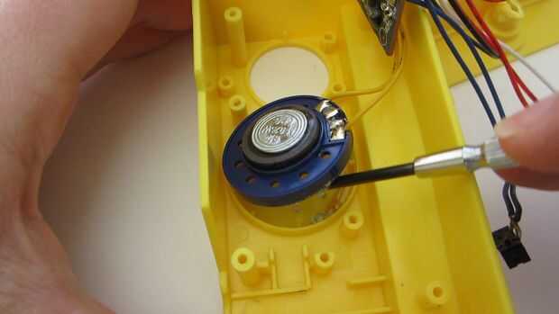 Desenroscar la carcasa exterior del módulo y ábrala. Desenroscar las piezas del módulo de los sonidos del interior vivienda. El orador a menudo se pega en su lugar. Utilice un cuchillo afilado para cortar cuidadosamente el pegamento por la parte exterior del altavoz. Entonces suavemente haciendo palanca, lo suelta con un destornillador pequeño.
