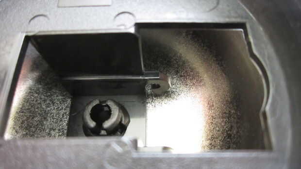 En este caso el interruptor play era muy pequeño y habría sido difícil montarlo directamente debajo del botón. Así que por el contrario, me decidí a montar el interruptor play en el interior pared de la base y presiona con un trozo pequeño de plástico que se adjunta al botón.