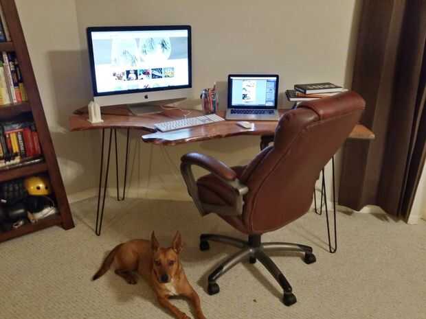 Mi novia estaba en necesidad desesperada de un escritorio para hacer su trabajo de oficina en casa. Puesto que su cumpleaños es en el mismo mes como Navidad, tuve que realmente paso a mi juego. Así que decidí hacer un escritorio de un borde vivo losa madera de un árbol de mezquite con piernas de horquilla de acero hechos en casa que se le atribuye.