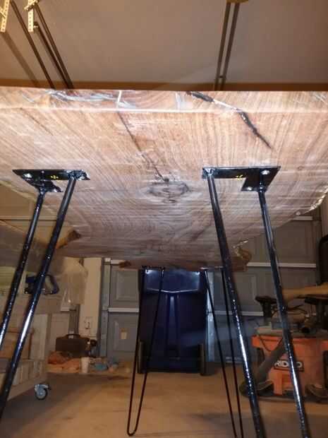 Este impresionante aspecto vivo borde mesa se realiza mediante una losa de madera y algunos barra acero que doblado en forma plana, soldadura no involucrados. Hay así que muchos fresco mirando las losas que hay para escoger en diferentes colores, tam