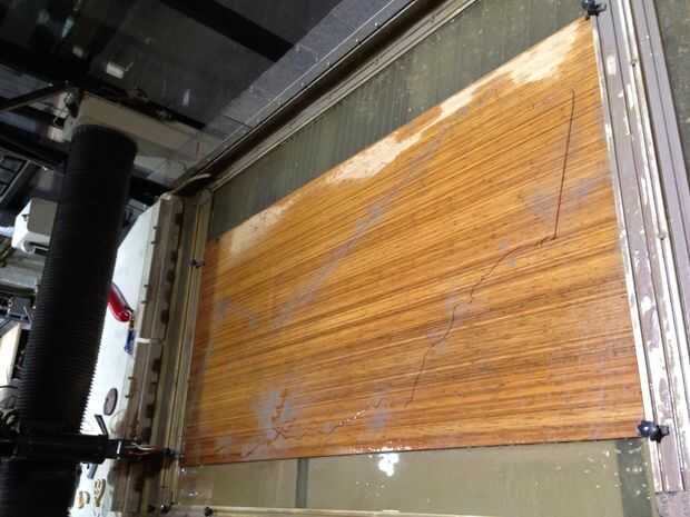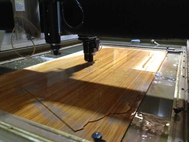 Estaba bastante satisfecho con la calidad de la corte, en plyboo, desde el chorro de agua. Había unos chipsc muy pequeña en el borde inferior. También, debido al agua y abrasivo, astillas pequeñas parecían estar saliendo de las caras de la plyboo. Esto podría evitarse por mano cortando la imagen o usando un bot de tienda.
